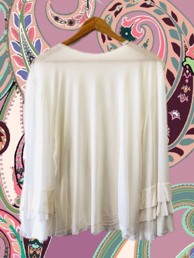 Detalhes: Blusa podrinha Cor off white Manga Longa Detalhe de babados Sem fechamento