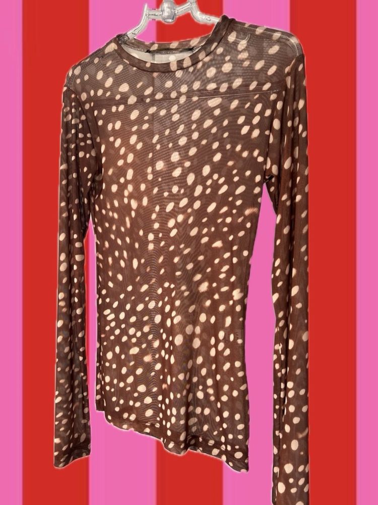 Detalhes: Blusa de tule transparente Estampa bambi Manga longa Sem fechamento