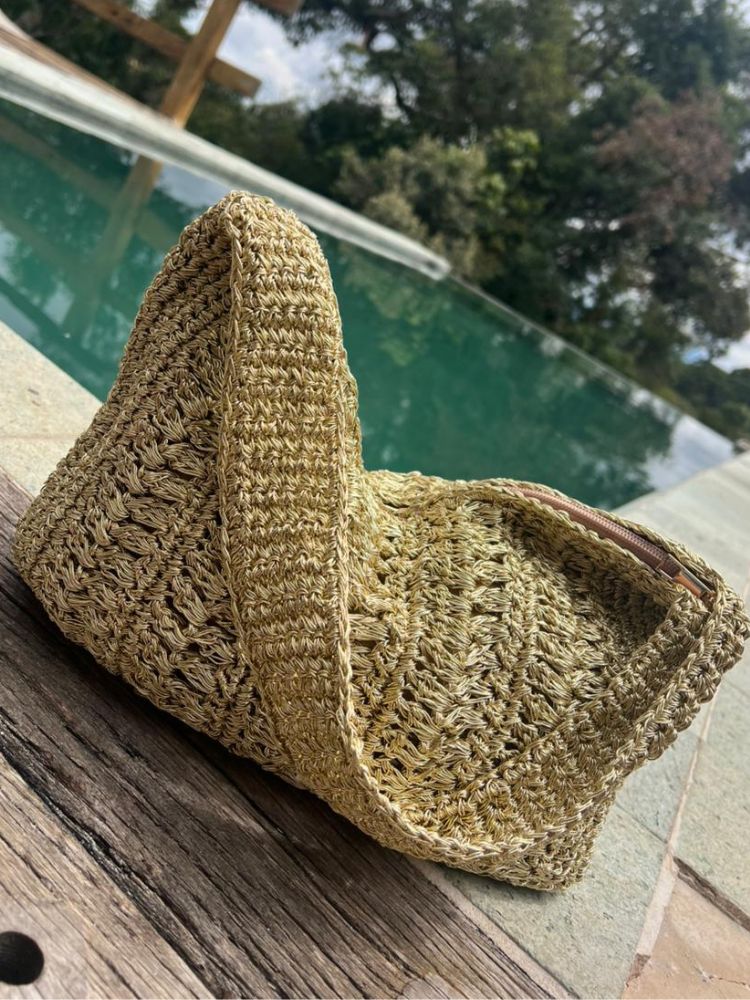 Detalhes: Bolsa crochê Dourado metalizado Alça Fechamento por zíper