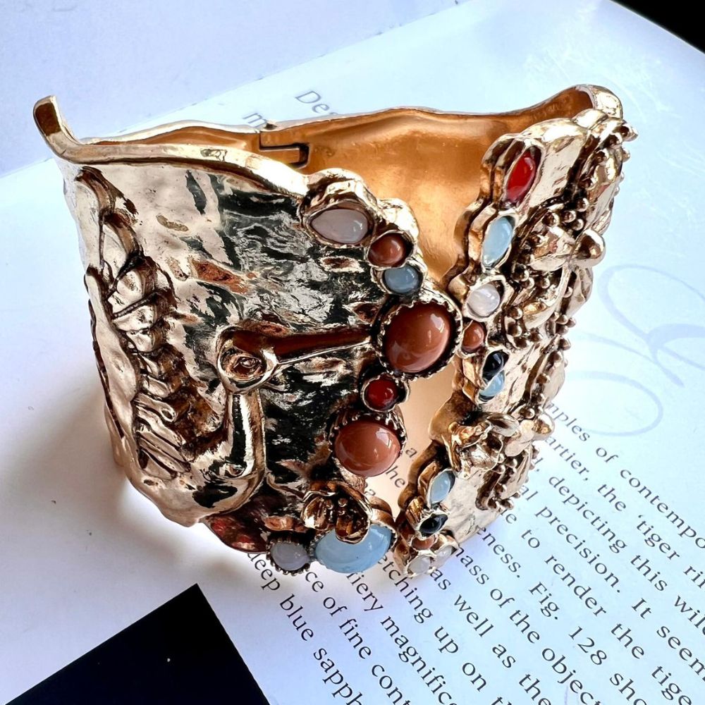 Bracelete rígido dourado martelado