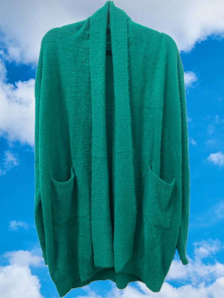 Detalhes: Casaco verde Tecido malha pelo curto Manga Longa Bolsos na parte frontal Sem fechamento