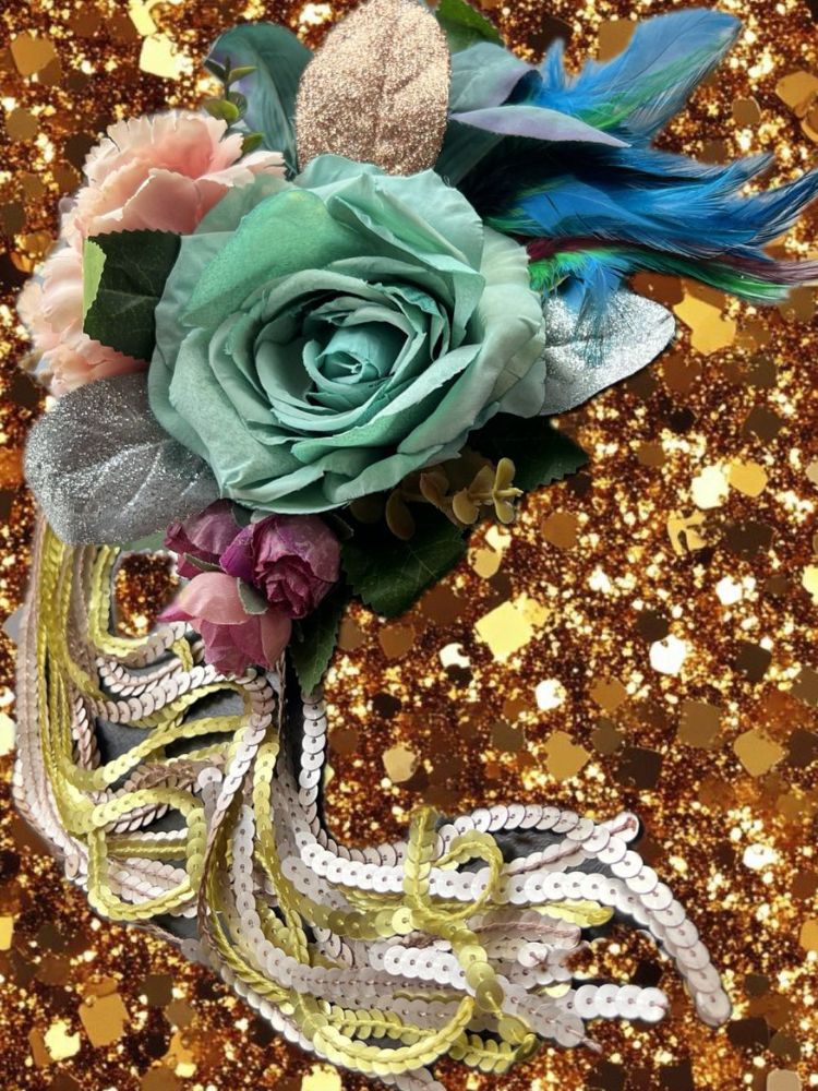 Detalhes: Casquete Cor ágata Detalhado por flor, plumas e paetês Presilha do tipo bico de pato Pode ser usado como ombreira, broche e presilha