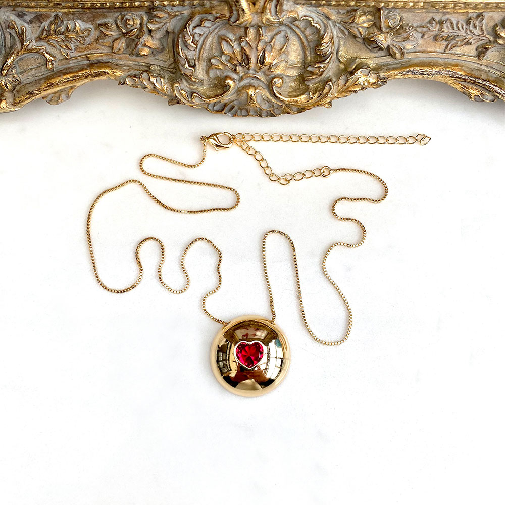 Pingente no formato abaolado com zircônia de coração na cor rubi
