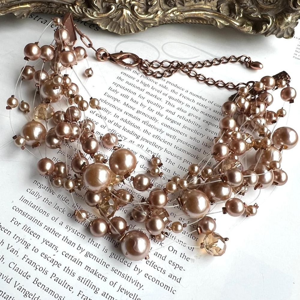 Pérolas cobre em tamanhos variados ao longo da corrente