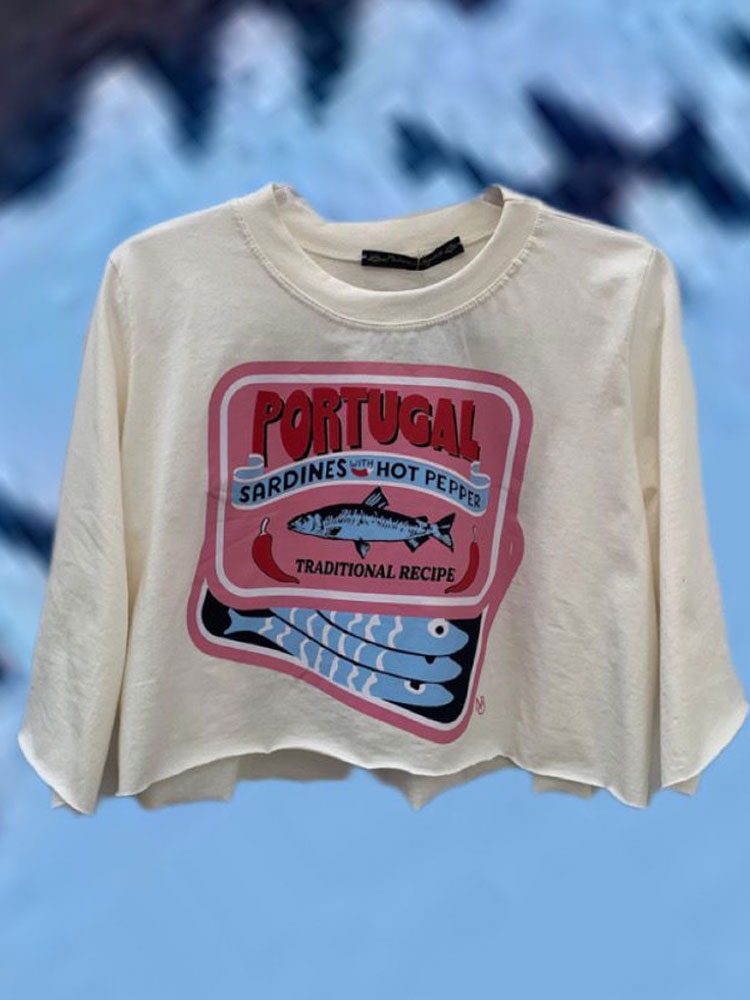 Desenho de sardinhas com escrita: Portugal sardines with hot pepper