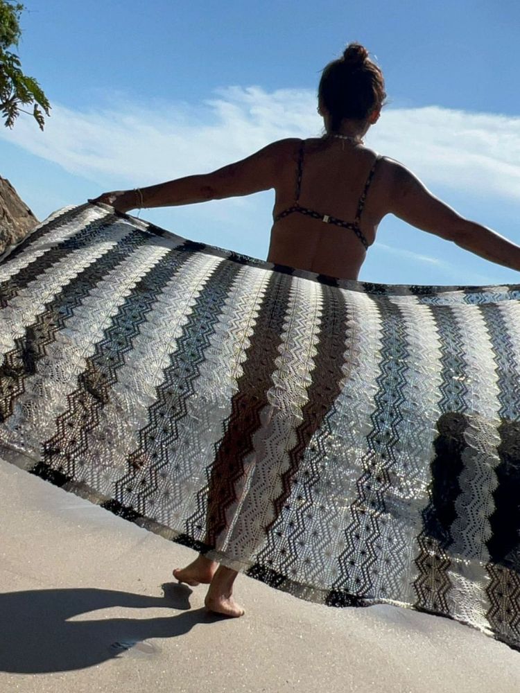 Detalhes: Pareô multiuso Tecido crochê Cor preto e branco