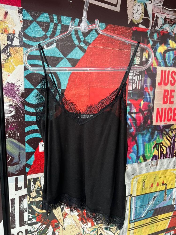 Detalhes: Blusa regata Cor preto Renda no decote em V Alça regulável Sem fechamento