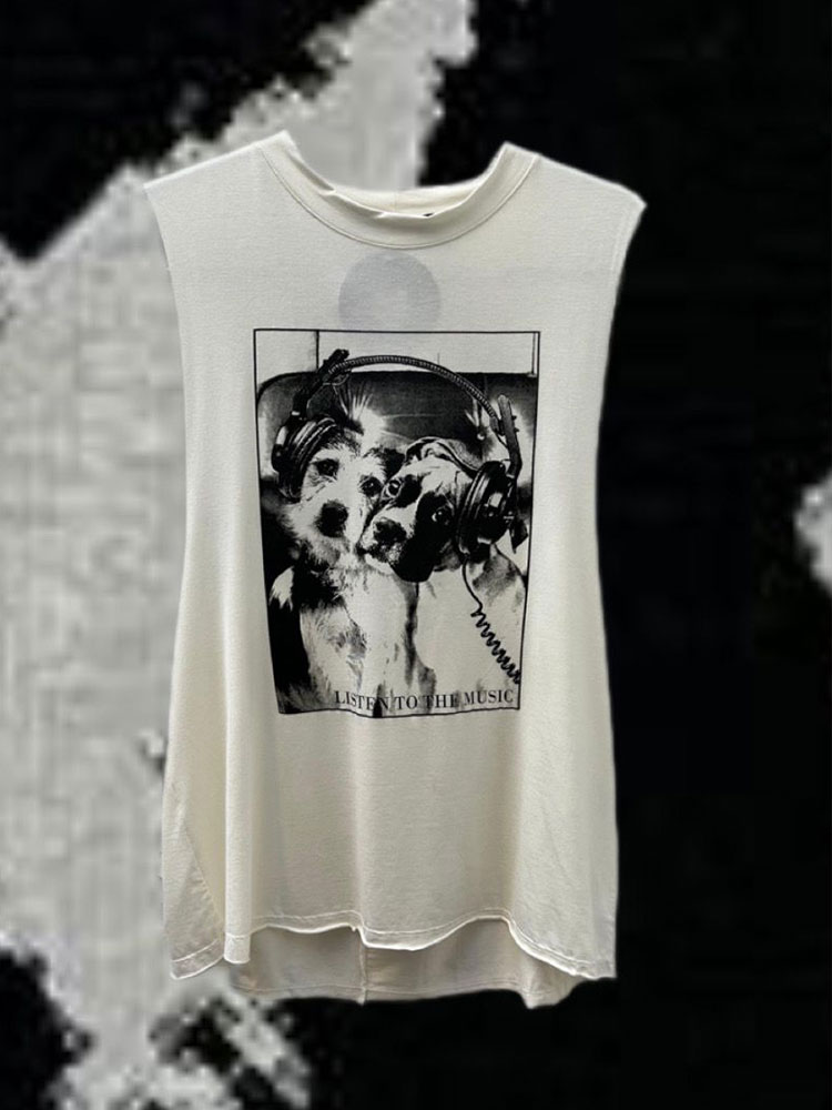 Estampa dois cachorrinhos escutando música no fone