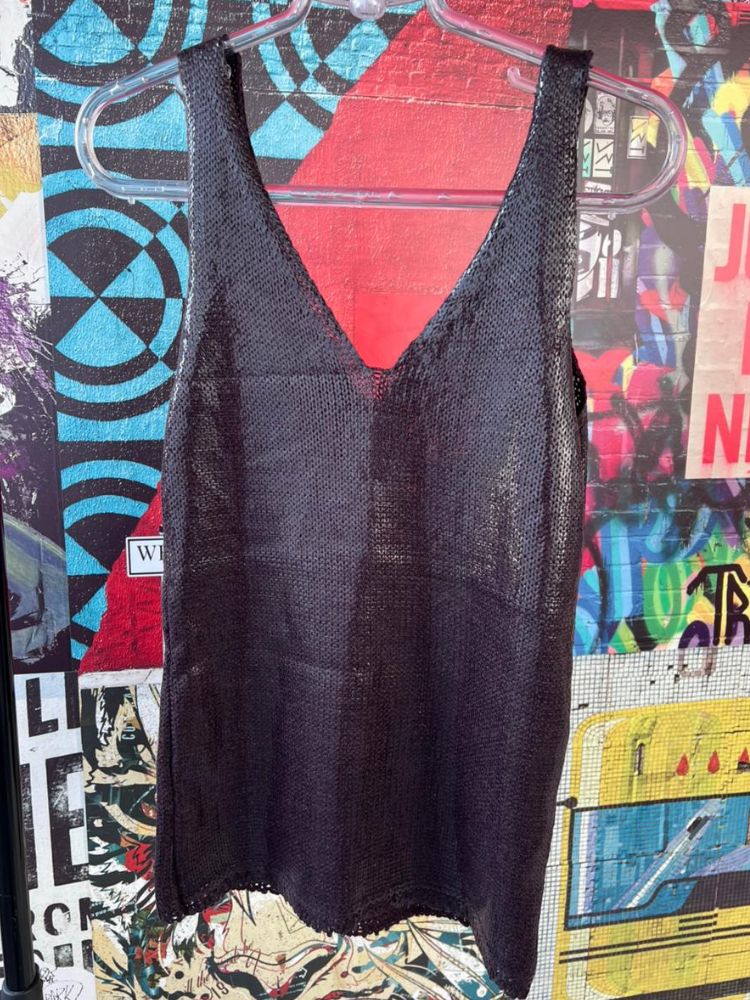 Detalhes: Regata tricot Foil berinjela Decote V Sem fechamento