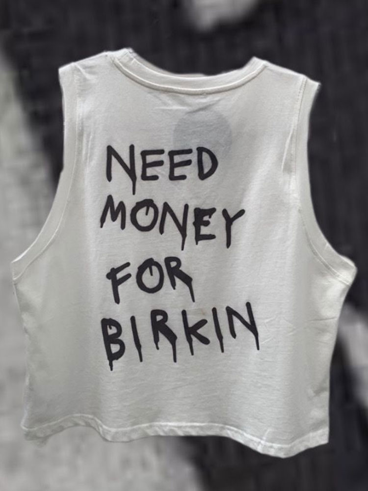 Detalhes: Regata Branca Estampa localizada nas costas Escrita " Need money for Birkin" Sem fechamento