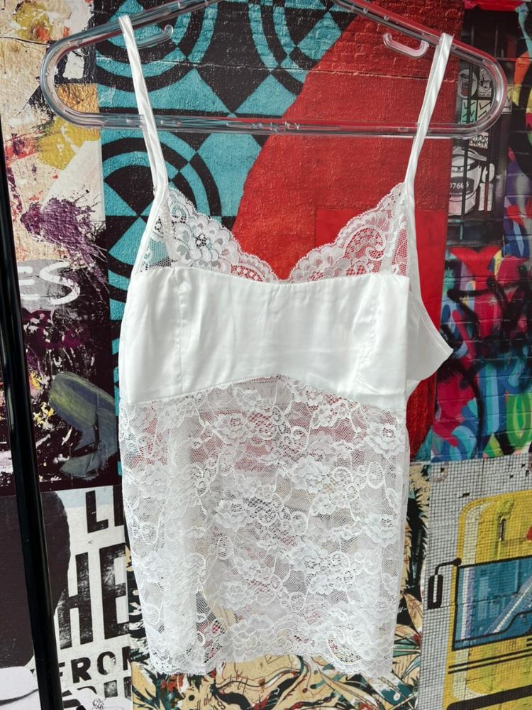 Detalhes: Blusa regata Cor branca Renda Faixa cetim