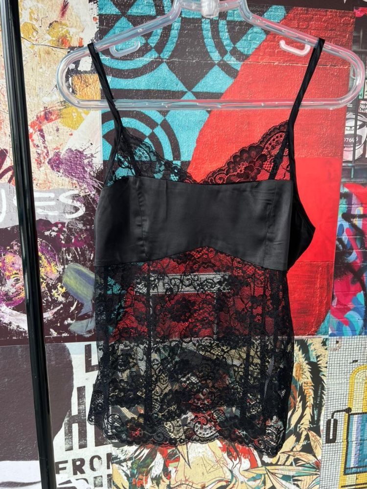 Detalhes: Blusa regata Cor preto Renda Faixa cetim