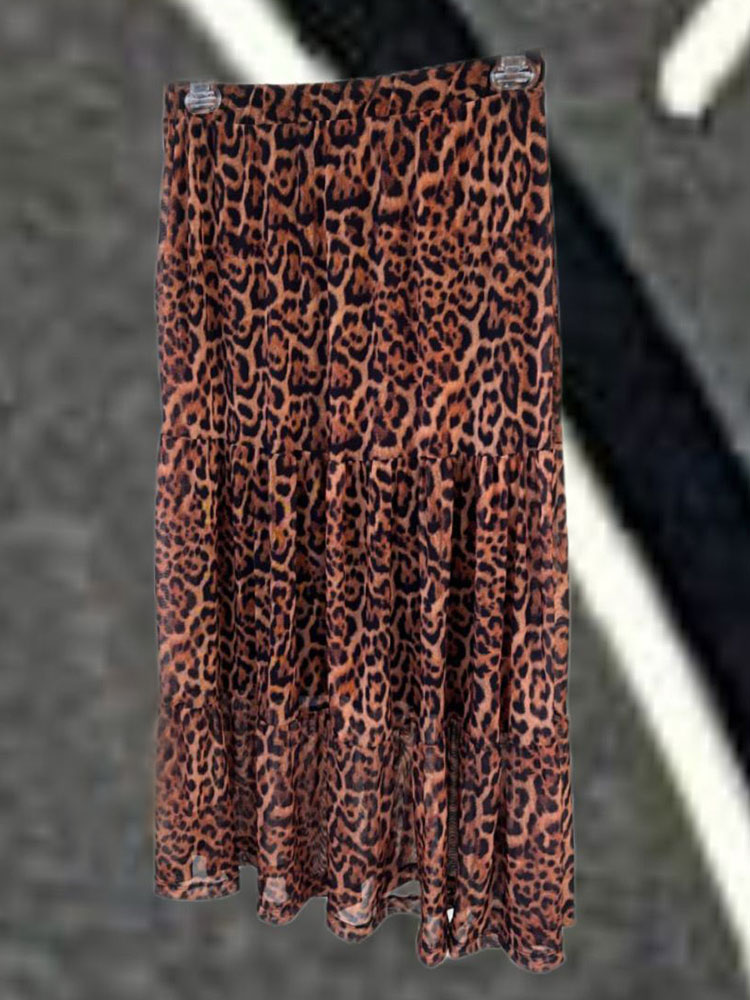 Detalhes: Saia midi Babados Estampa onça