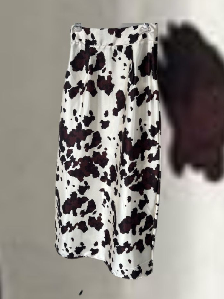 Composição: 100% Cetim Detalhes: Saia Cetim Comprimento longo Estampa vaca Zíper na lateral