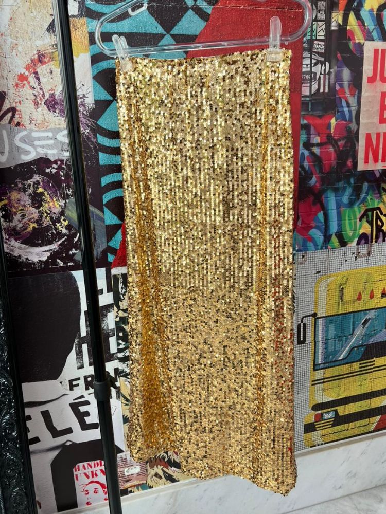 Detalhes: Saia longa Tecido bordado de paetês Cor dourado