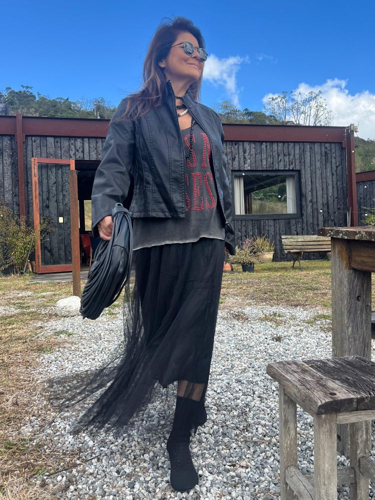 Detalhes: Saia longa de tule Cor preto Com forro Cintura com elástico