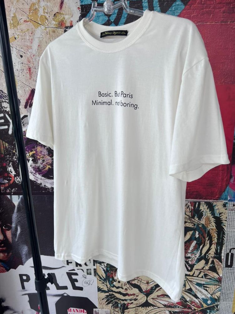 Detalhes: T-shirt Cor off white Manga curta Estampa localizada na parte frontal Escrita "Basic.But Paris Minimal. not boring." Sem fechamento