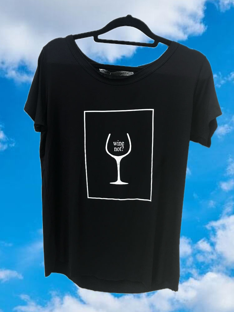 Estampa escrita wine not com desenho da taça de vinho