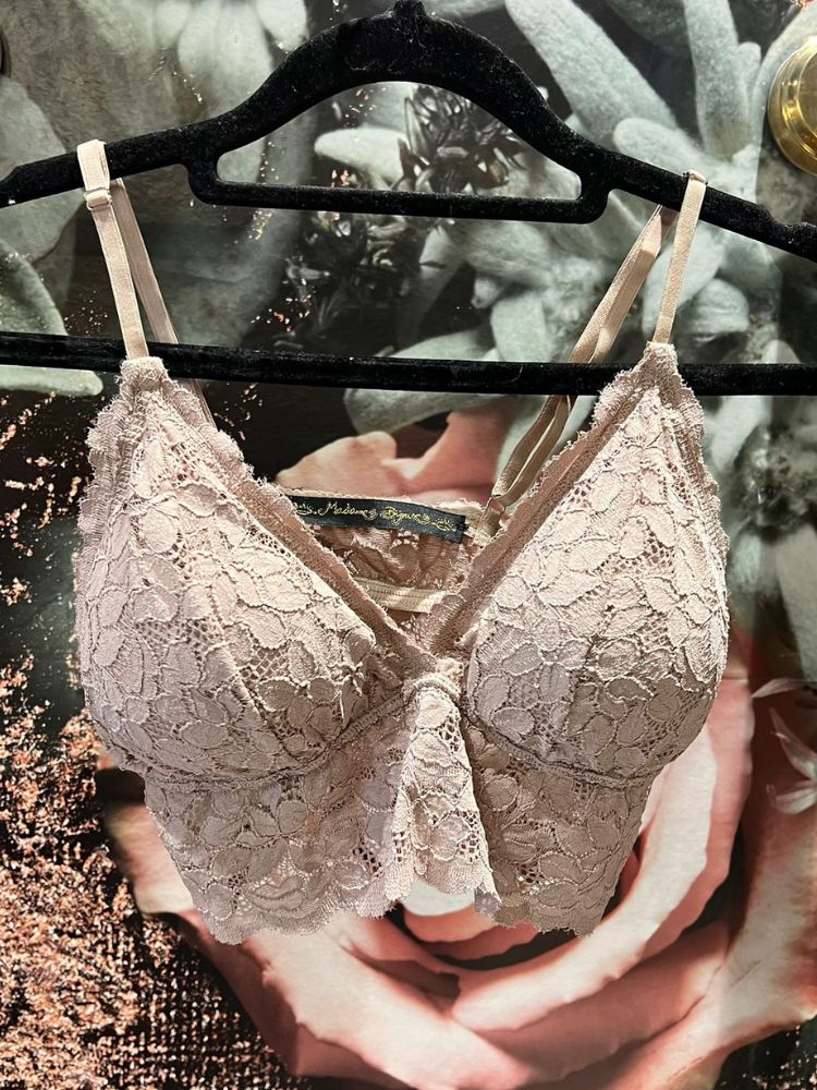 Detalhes: Top de renda nude Com bojo Alças reguláveis Elástico Sem fecho