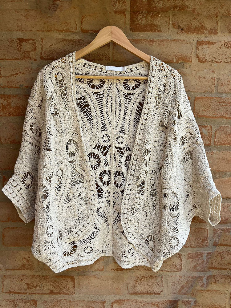 Detalhes: Kimono de crochê Cor areia Sem fechamento